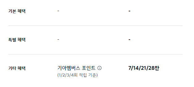 기본혜택, 특별혜택 없음