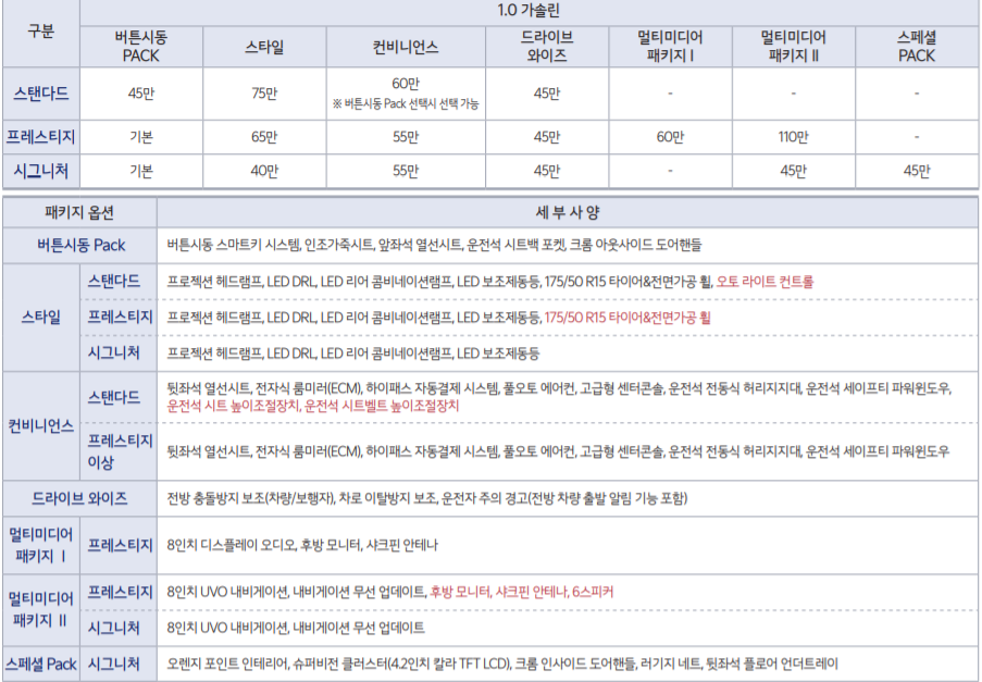 경차에 이러한 편의사양을 선택하거나 고를 수 있다는 점은 긍정적으로 보입니다.