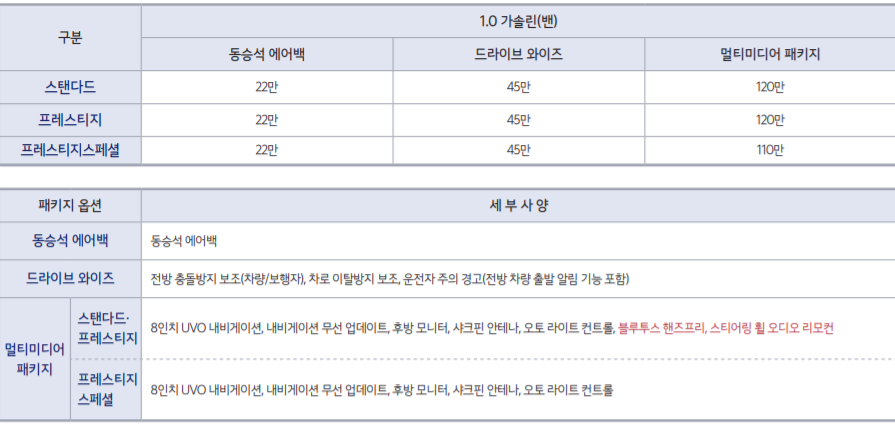 물론 상위 옵션의 경우에 모든 옵션이 포함되기는 하지만