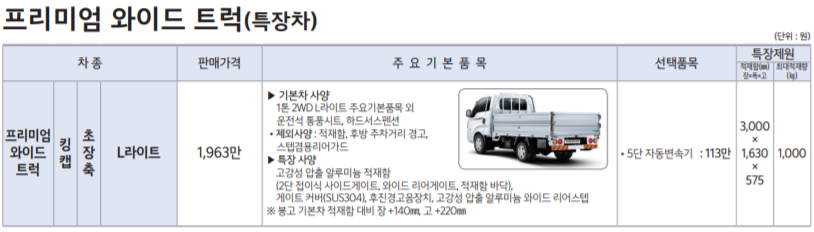 | 봉고 3 더블캡 초장축 L 라이트 |