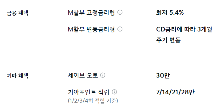 기본적인 세이브 오토, 기아 포인트 적립등의 할인 혜택만 제공되고 있습니다.
