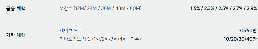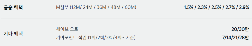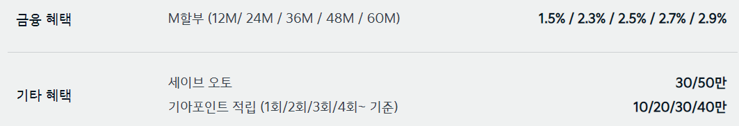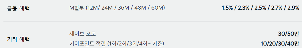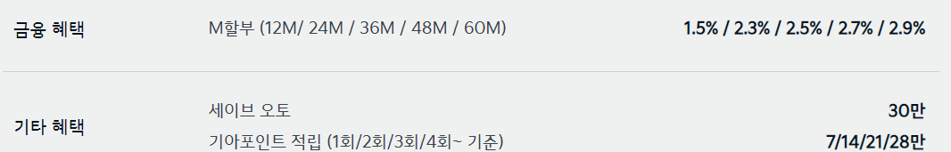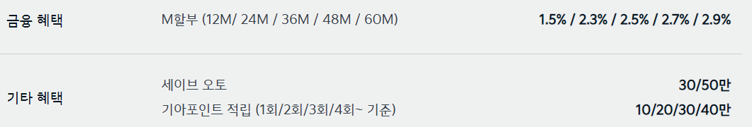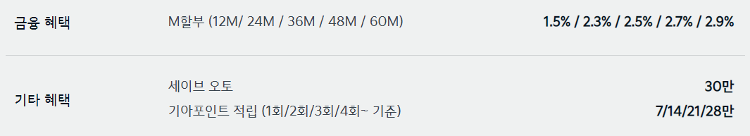 자동차 판매에 성수기여서 그런지 제조사에서 제공하는 할인 혜택은 다양하지 않습니다.