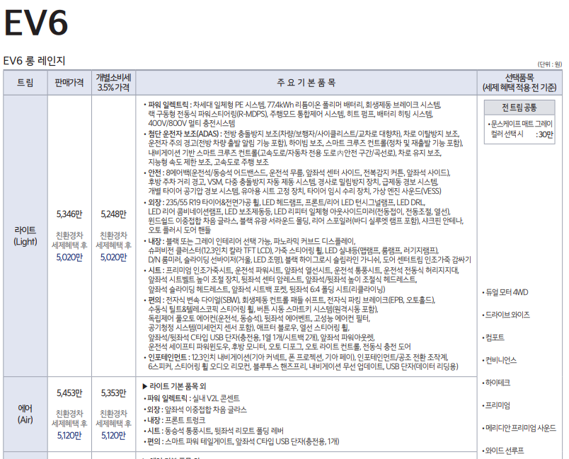 ev6 각 트림별 가격, 옵션에 대하여 살펴보겠습니다.