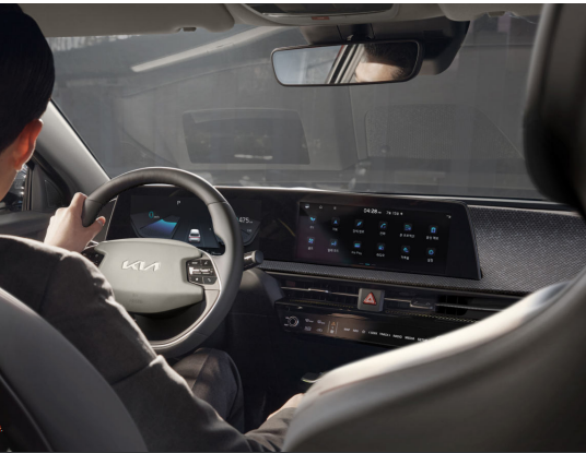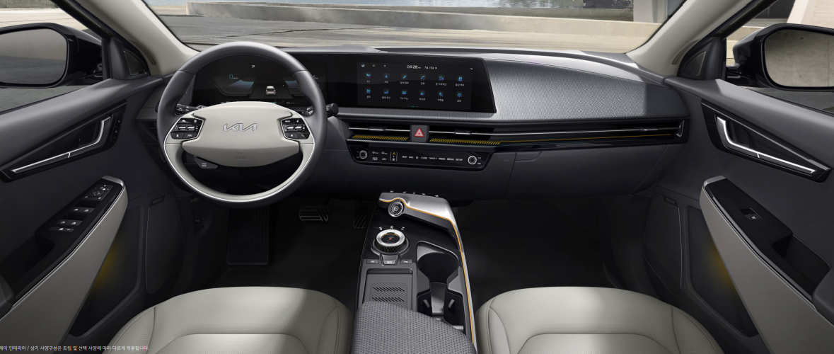 미래지향적인 모습의 ev6 실내 모습으로 깔끔하면서 세련된 모습입니다.