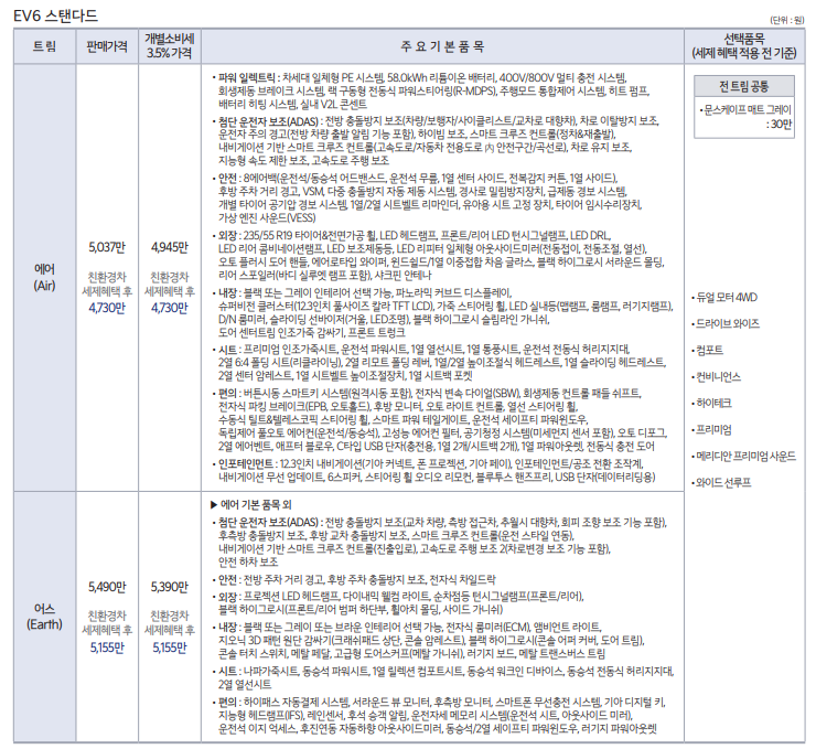 기아 전기차 ev6 스탠더드 모델 가격 살펴보기