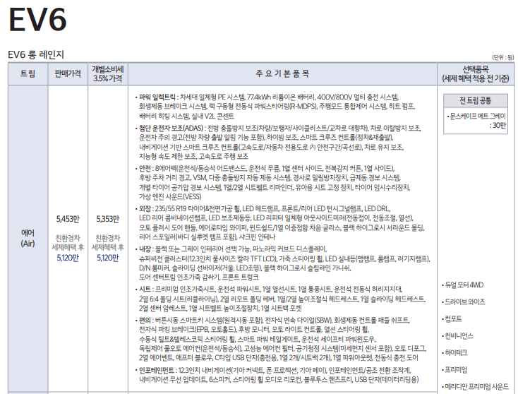 ev6 가격은 전기차 보조금 적용 전 가격으로 실제 구매 가격은 최소 1000만 원 이상 저렴하게 구매가 가능합니다.