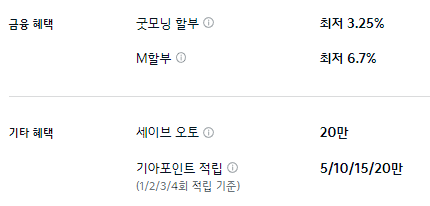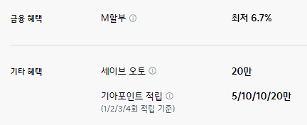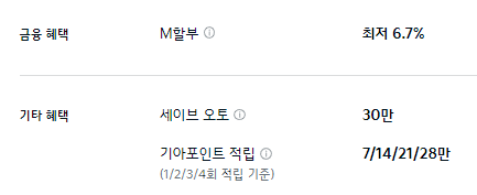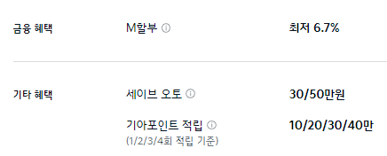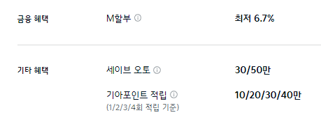 M 할부나 세이브 오토, 기아 포인트 적입등의 기본적인 혜택만 제공합니다.