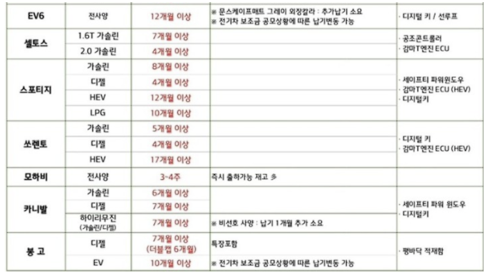 K8하이브리드 차량도 7개월 이상 소요됩니다.