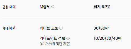 또한, 세이브 오토나 기아포인트 적립도 동일하게 최대 50만 원 혜택이 제공됩니다.