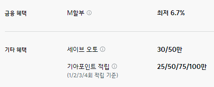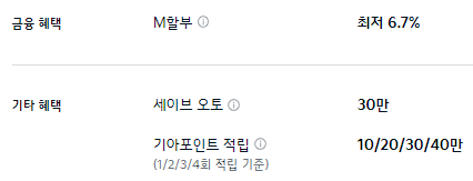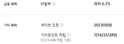M 할부나 세이브 오토, 기아 포인트 적입등의 기본적인 혜택만 제공합니다.