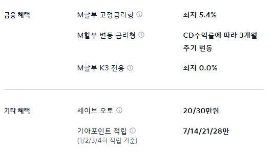 기아 k3 10월 구매 고객은 변동 금리형 금융혜택으로 CD수익률 따라 3개월 주기변동으로 할부 구매가 가능합니다. 세이브 오토는 최대 30만 원까지 선할인이 가능합니다.