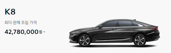 기아 k8은 신형 그랜저 출시로 인하여 판매가 주춤합니다.