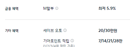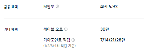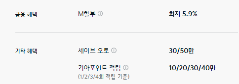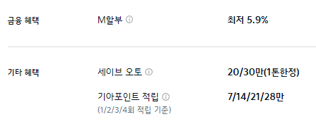 M 할부나 세이브 오토, 기아 포인트 적립의 프로모션이 제공됩니다.