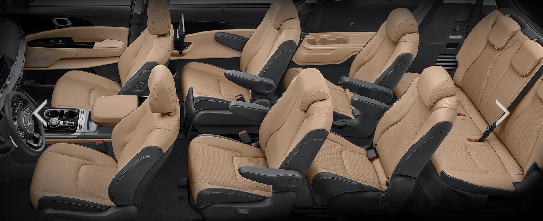 2열 독립시트(전/후 슬라이딩, 리클라이닝, 워크인), 3열 독립시트(쿠션 팁업&전/후 슬라이딩, 리클라이닝), 4열 팝업 싱킹 시트