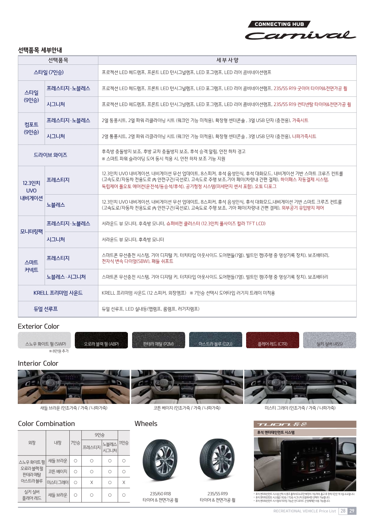 [기아] 2021 신형 카니발 옵션, 가격, 가격표
