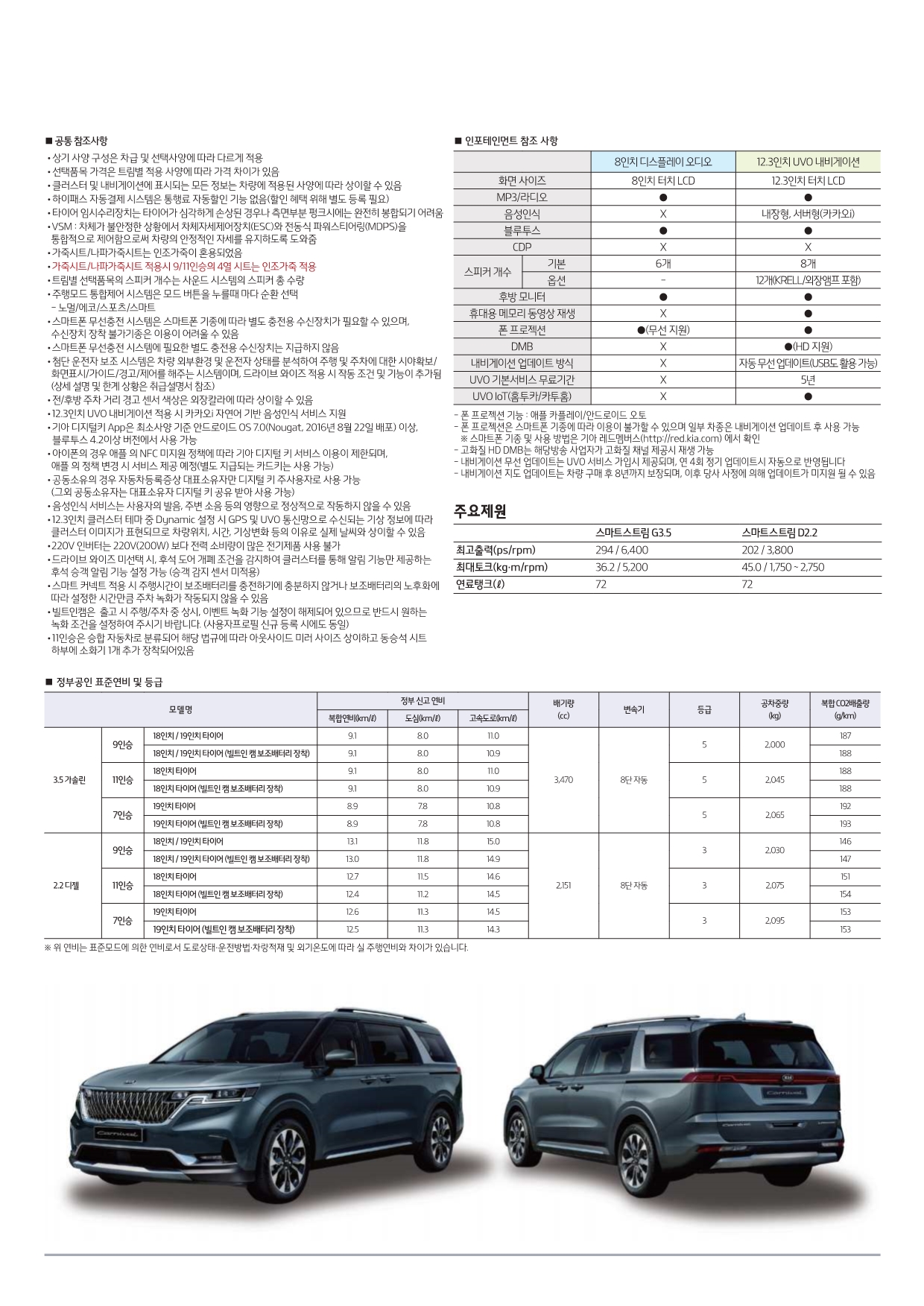 3.5가솔린과 2.2 디젤은 트림별 모든 사양 및 옵션이 일치합니다.