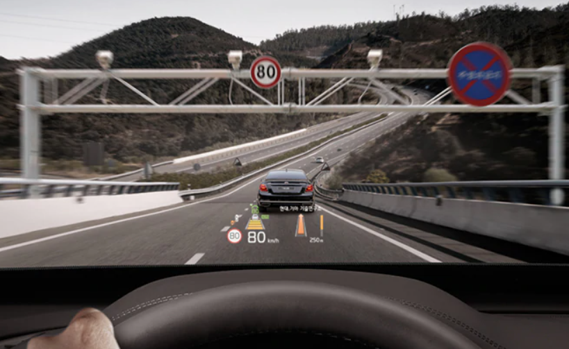 HUD (Head Up Display) : 윈드쉴드 글라스에 입체감 있는 그래픽과 다양한 주행정보를 투영시켜 보여줌으로써 운전자의 시선 이동을 최소화하여 안전한 운전을 도와 드립니다.