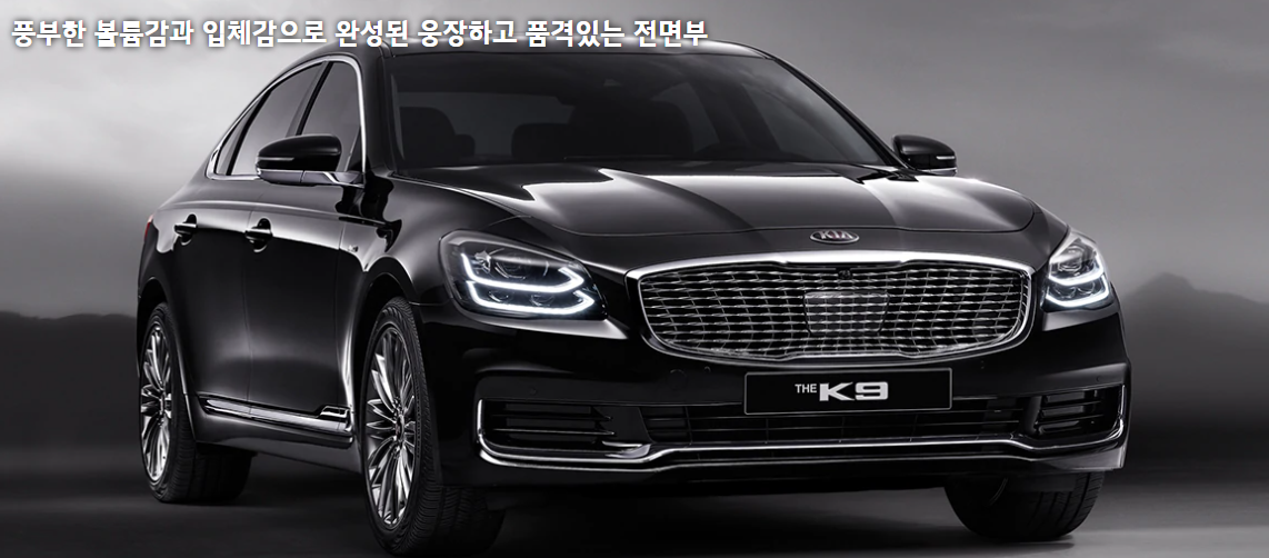 K9의 전면 디자인의 경우는 볼륨있는 입체감으로 웅장한 모습을 보여줍니다.