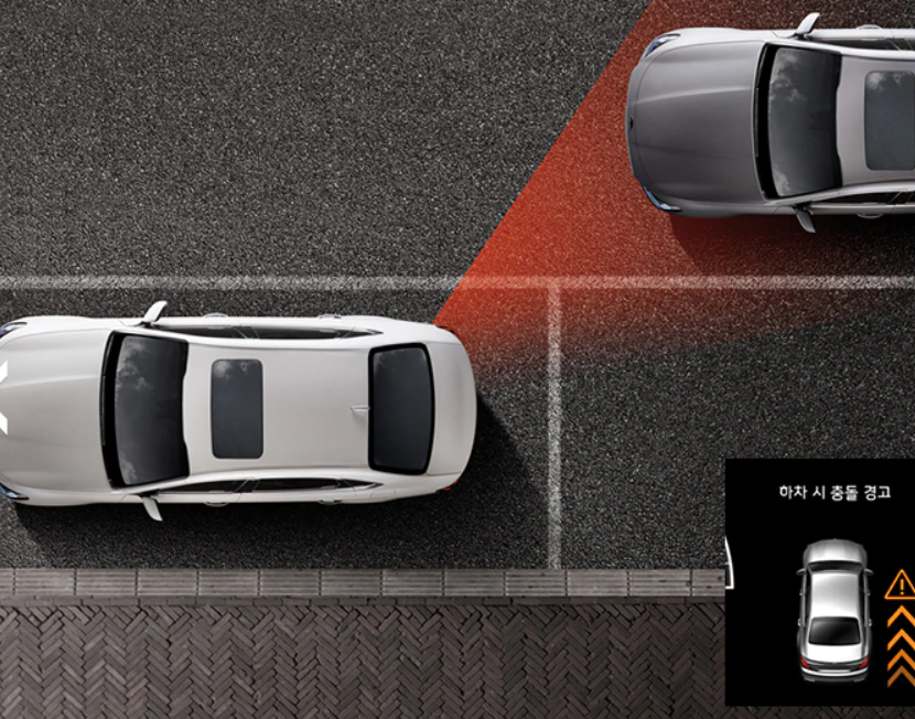 SEA (Safe Exit Assist) : 차량 정차 후, 하차를 위해 도어 오픈 시도 시, 후측방에서 차량이 접근할 경우, 클러스터 팝업 및 경보음을 통해 안전한 하차 환경을 제공합니다.
