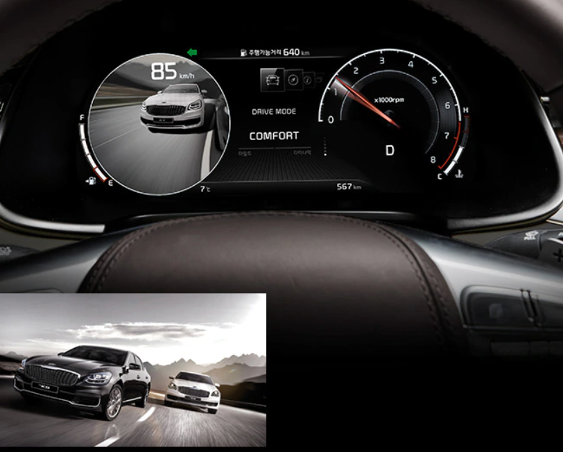 12.3인치 대화면 풀 컬러 LCD 창을 통해 사용자 친화적인 다양한 컨텐츠를 클러스터에 표시하여 운전을 더욱 안전하고 편리하게 도와줍니다.