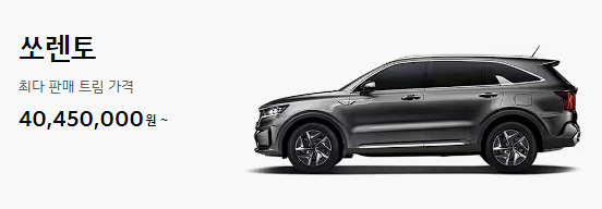 기아 쏘렌토 최대 판매 트림 가격은 40,450,000원입니다.