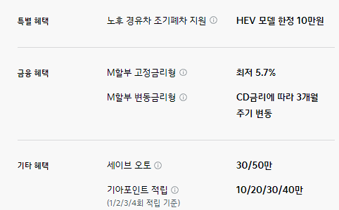 이외 세이브 오토, 기아 포인트 적립은 다른 차종들과 동일하게 제공됩니다.