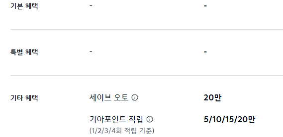 기타 혜택에서 세이브 오토, 기아 포인트 적립 등의 할인만 제공됩니다.