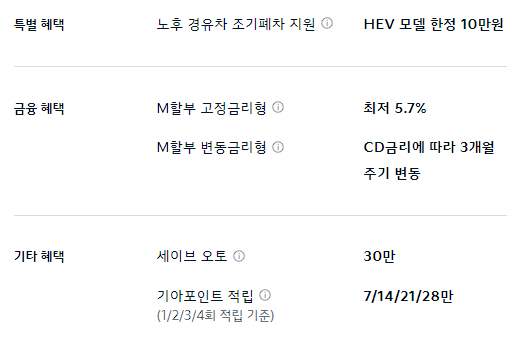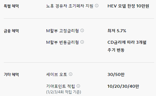 쏘렌토 하이브리드 구매 혜택 : 노후 경유차 조기 폐차 지원금 10만원