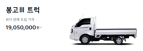 봉고 3 구매 혜택 : 3.5% 최저 금리로 할부 구매 가능
