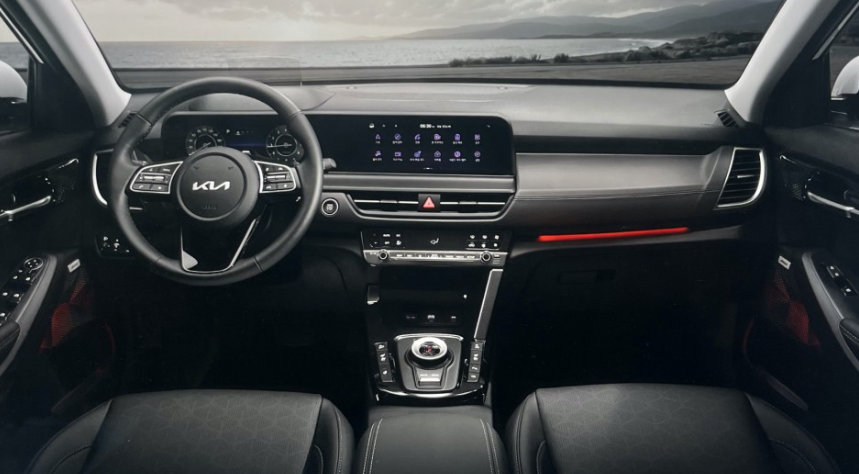 셀토스 페이스리프트 모델의 실내 디자인은 많은 변화가 있습니다. 내비게이션 모니터 화면이 계기판과 이어짐으로써 최근 유행하는 자동차 실내 디자인을 적용하였습니다.