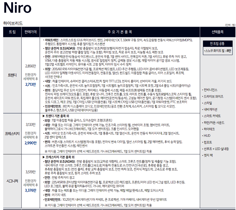 니로 트렌디 가격 : 27,130,000원
