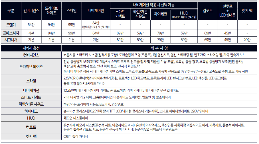 트렌디, 프레스티지, 시그니처로 나누어져 판매 중입니다.