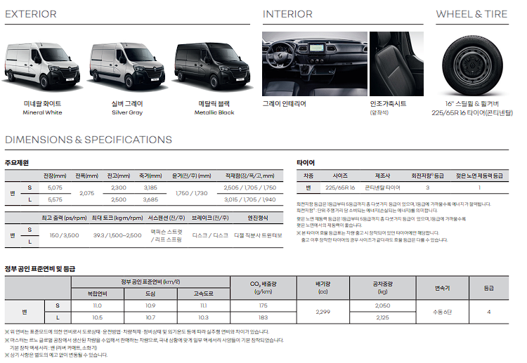 르노 마스터 S 연비 및 제원