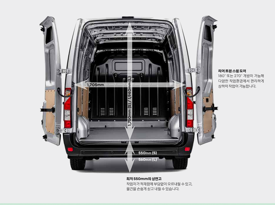 8인치 내비게이션, 화물 고정 고리, 넓은 사이드 미러, 공조 시스템, 동승석 벤치 시트 등의 기능을 통해서도 주행시 운전자를 보다 편리하게 도와줍니다.