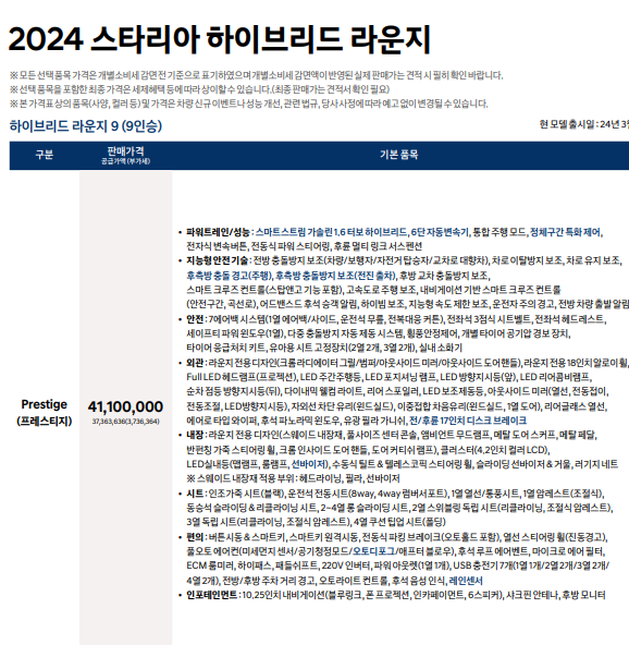 스타리아 라운지 하이브리드 판매를 시작하였습니다.