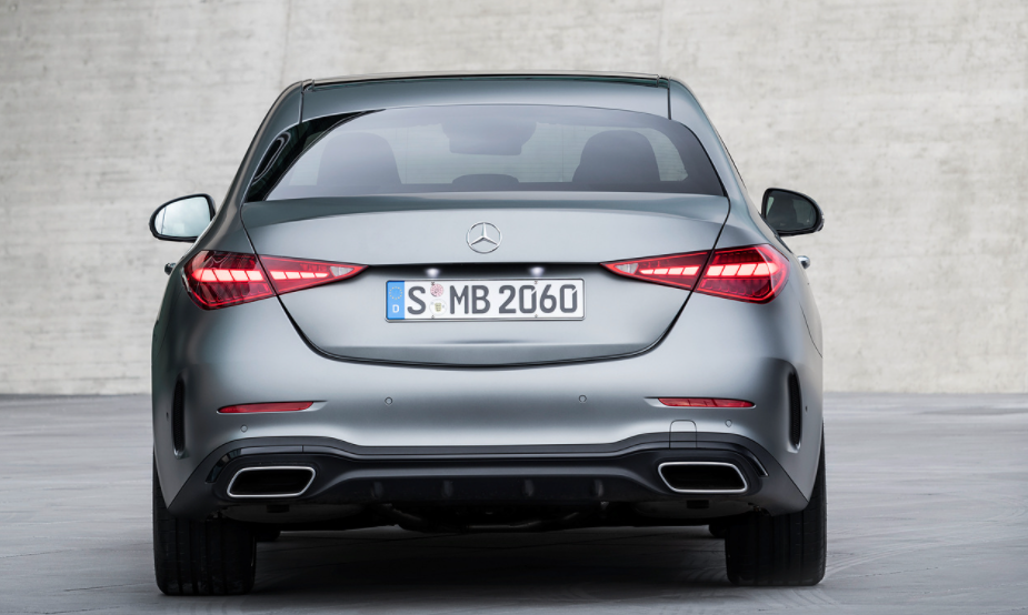 c클래스 후면 디자인은 가로로 길게 뻗은 테일램프가 특징입니다.