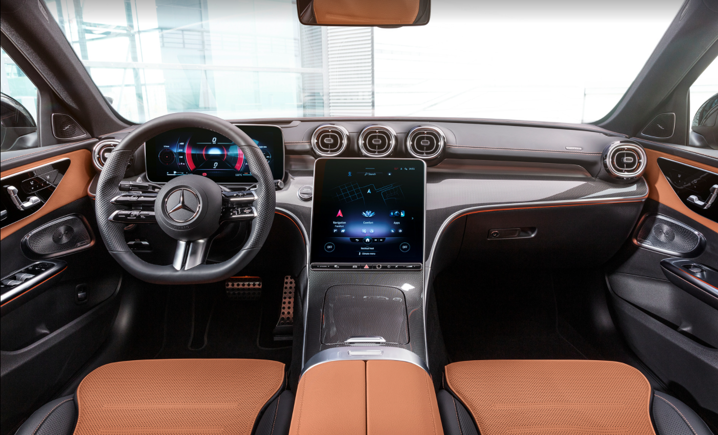 c클래스 신형 실내 디자인은 s클래스와 비슷한 디자인입니다.