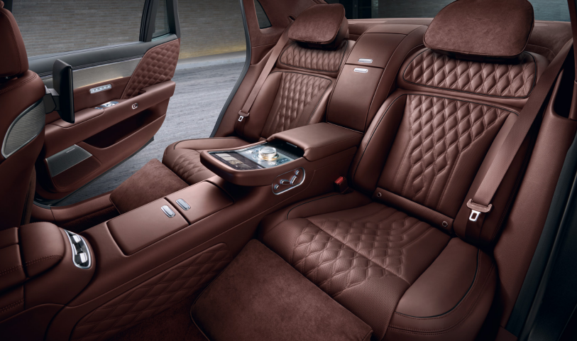 g90 리무진은 넉넉한 실내 공간을 자랑하며 비행기 비즈니스 좌석의 느낌을 받을 수 있습니다. 2열 시트가 리클라인 기능이 제공되며, 오너들에게 이동 중 최적의 편리함을 제공하고 있습니다.