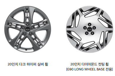 제네시스 g90은 4가지 디자인의 휠을 선택할 수 있습니다.