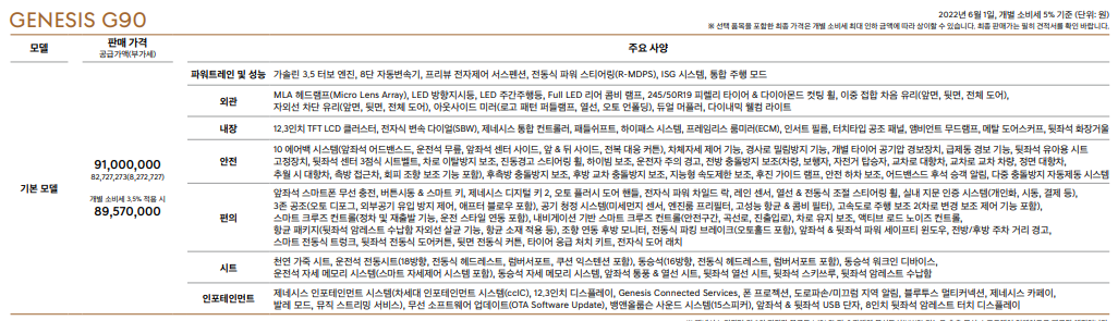 9천만 원의 g90 기본 트림은 대부분의 사양들이 기본으로 적용되어 구매하기에 충분합니다.