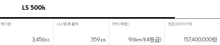 ls 500h는 렉서스 하이브리드 시스템이 적용되었습니다. 다만, 배기량이 높은 대형 세단이기에 연비가 생각보다 뛰어나진 않습니다.