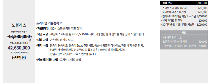 렉스턴 뉴아레나 프리미엄, 노블레스 등급으로 구분