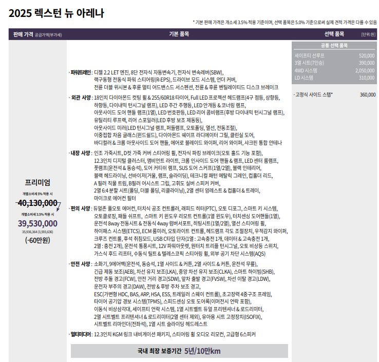 렉스턴 뉴아레나 프리미엄 가격