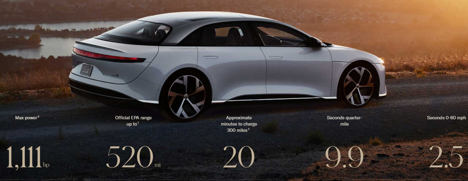 루시드 에어 전기차 특성은 다음과 같습니다.