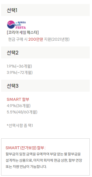현금 구매 시 200만 원 지원(2021년형)
