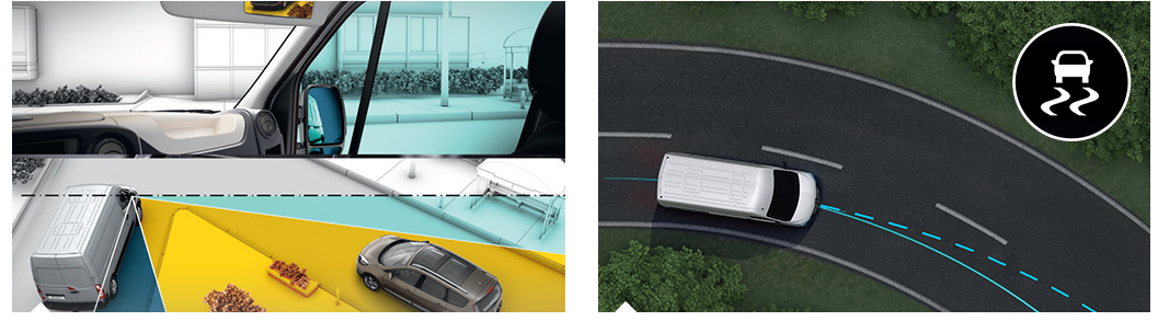 강한 측풍에 의해 높은 차고를 가진 마스터가 순간적으로 차선을 이탈하는 위험 상황 발생을 최소화하는 기능으로 차제 자세 제어장치(ESC)와 연동되어 구동력을 제어해 고속 직진 주행 시 안정성을 확보해주는 측풍 영향 보정 기능도 적용되고 있습니다.