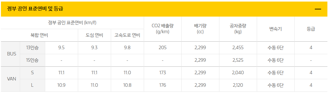 연비의 경우는 르노 마스터 밴은 복합연비 11.1km/l를 보여주고 있습니다. 큰 차체에 비해 준수한 모습을 보여주네요,