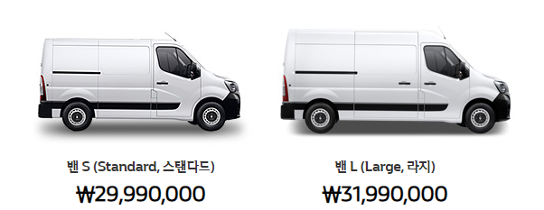가격은 숏 버전이 마스터 밴 S 2,999만 원, 롱버전인 마스터 밴 L 3,199만 원입니다.