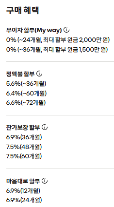 무이자 할부 최대 36개월(할부원금 2,000만 원까지)