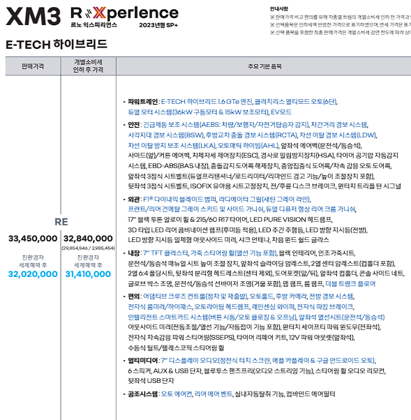 르노 XM3 하이브리드 가격 제원 가격표 카탈로그